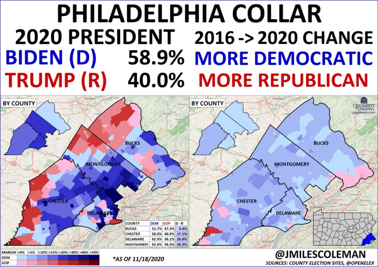 - Dekalb, a majority Black County, has shifted 11 points to the left, giving Biden a remarkable 83 percent
